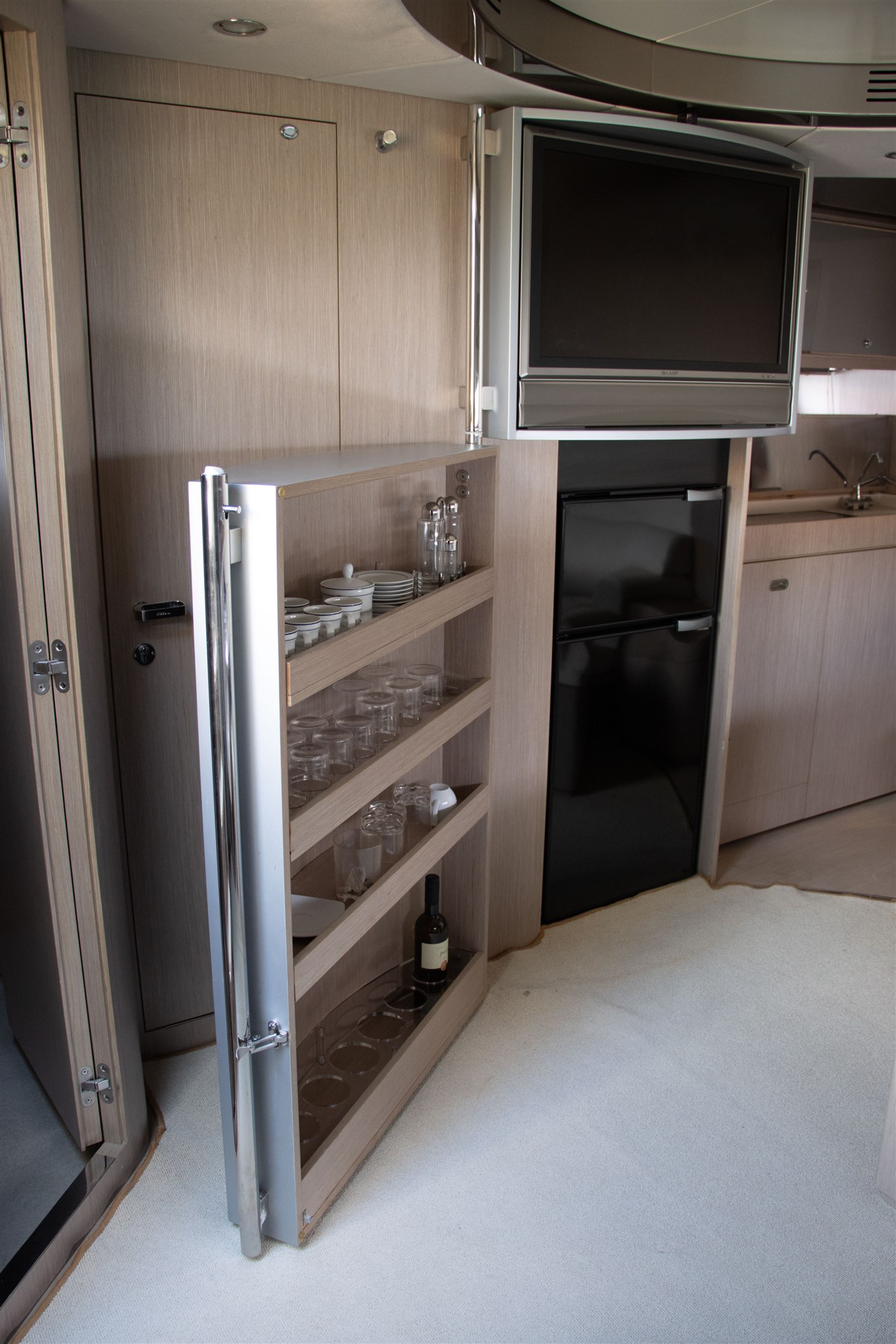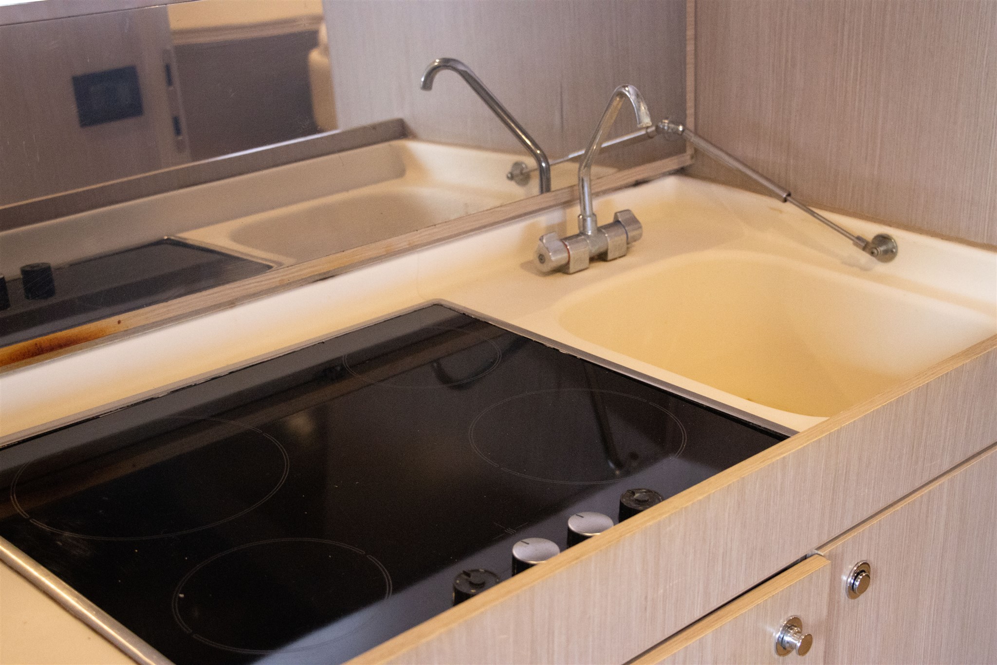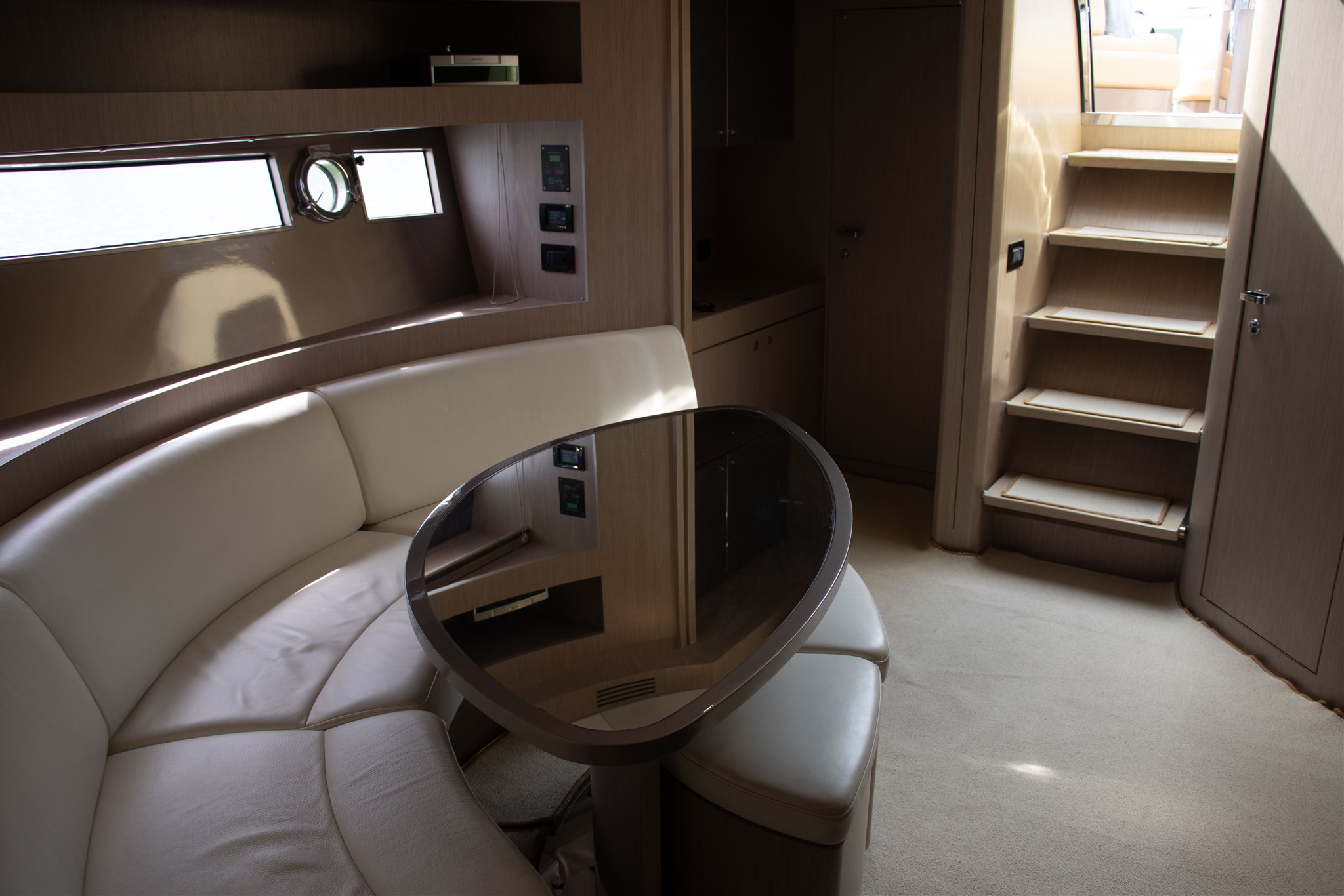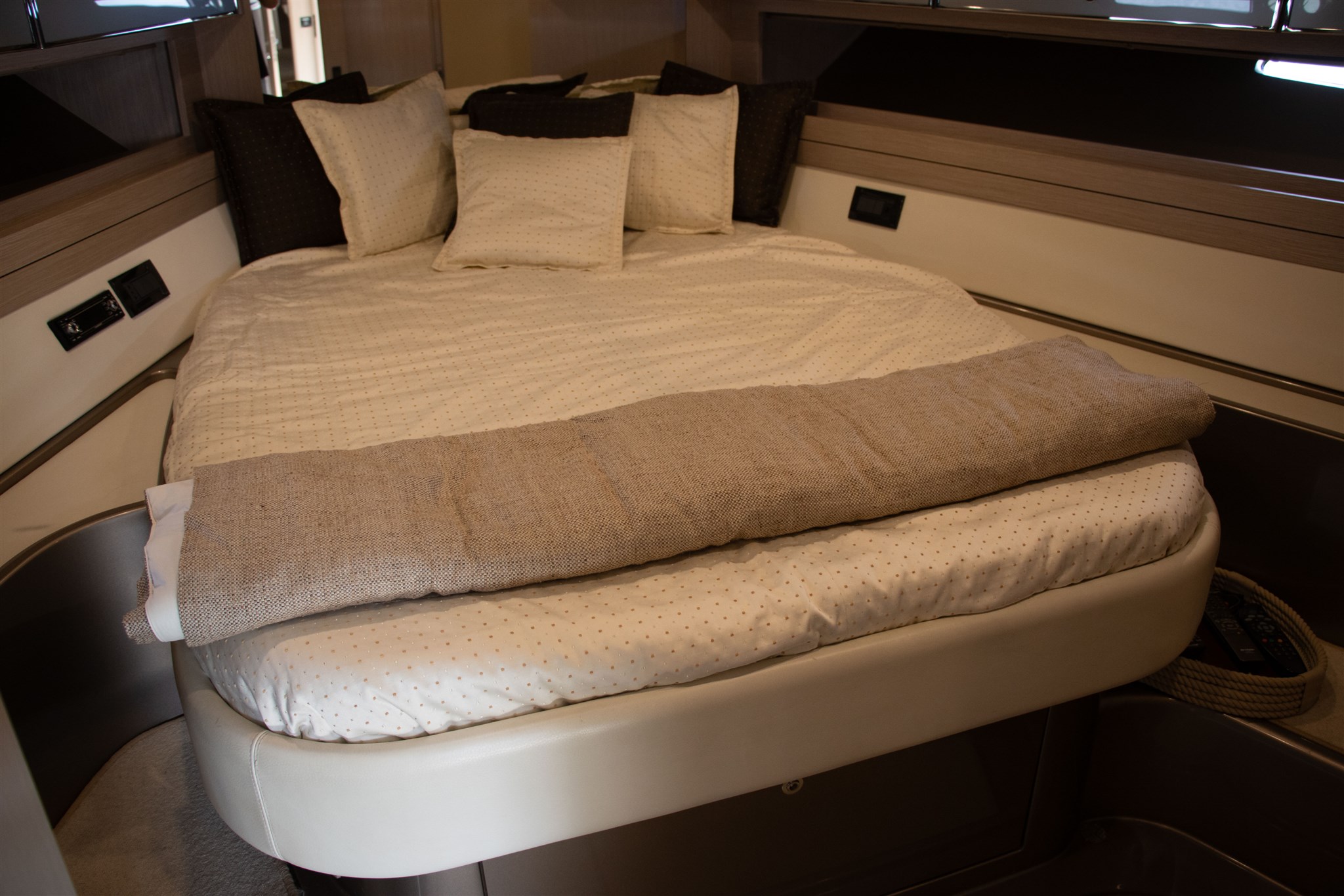 Boiler, Indicatore del serbatoio del carburante, Indicatore del Serbatoio dell’Acqua, Indicatore del Serbatoio delle Acque Reflue, Prese interne 12v, Prese interne 220v, WC marino elettrico.