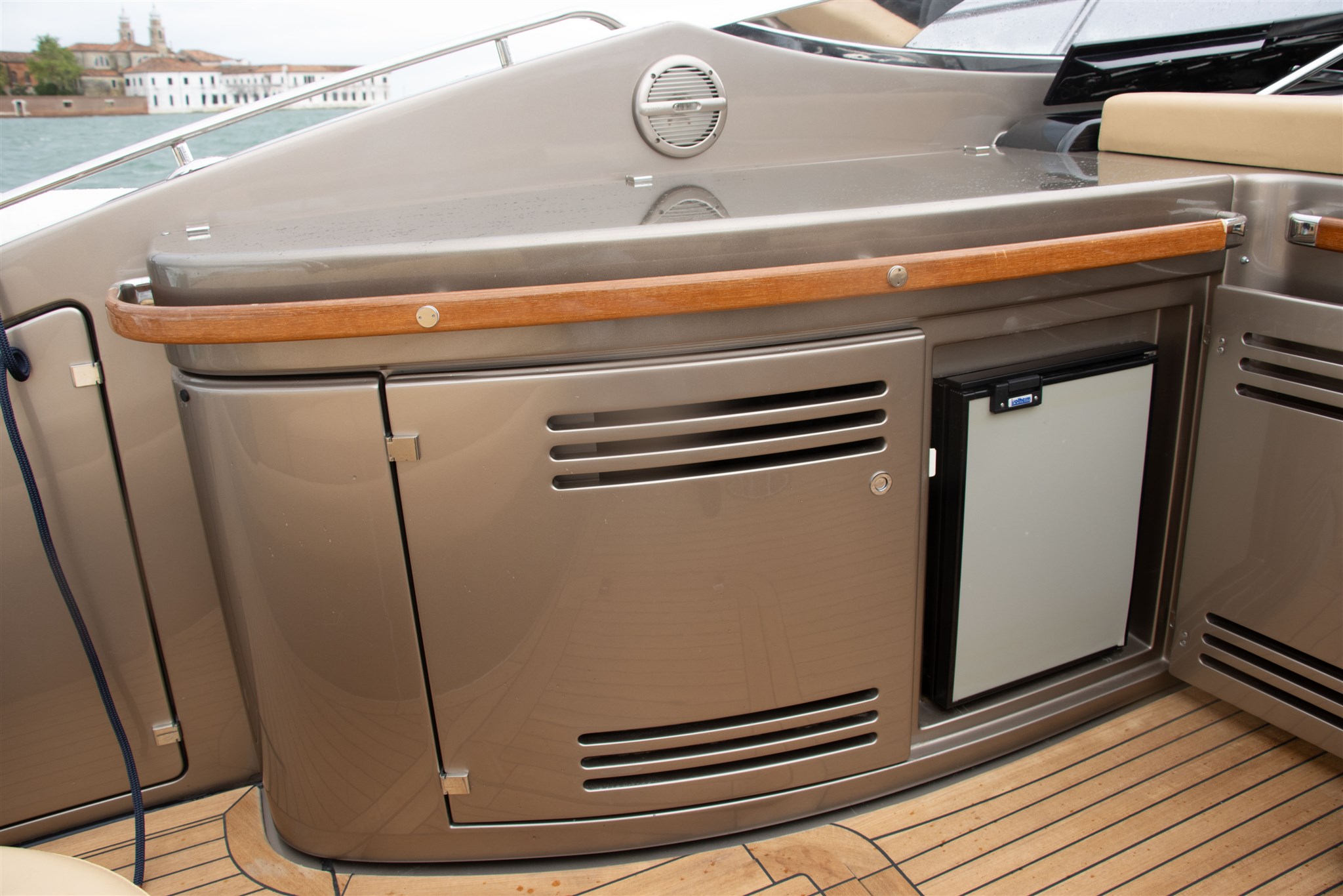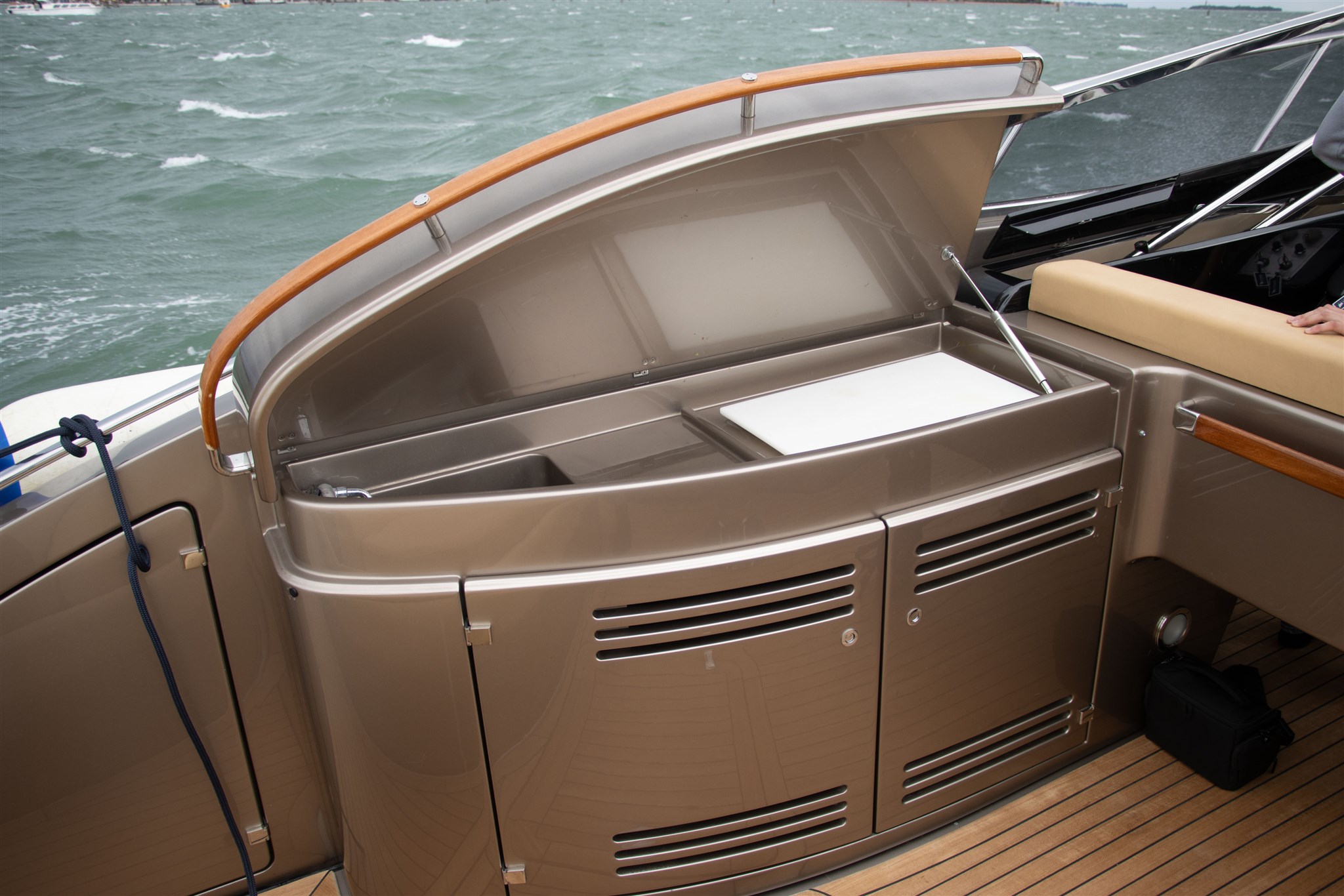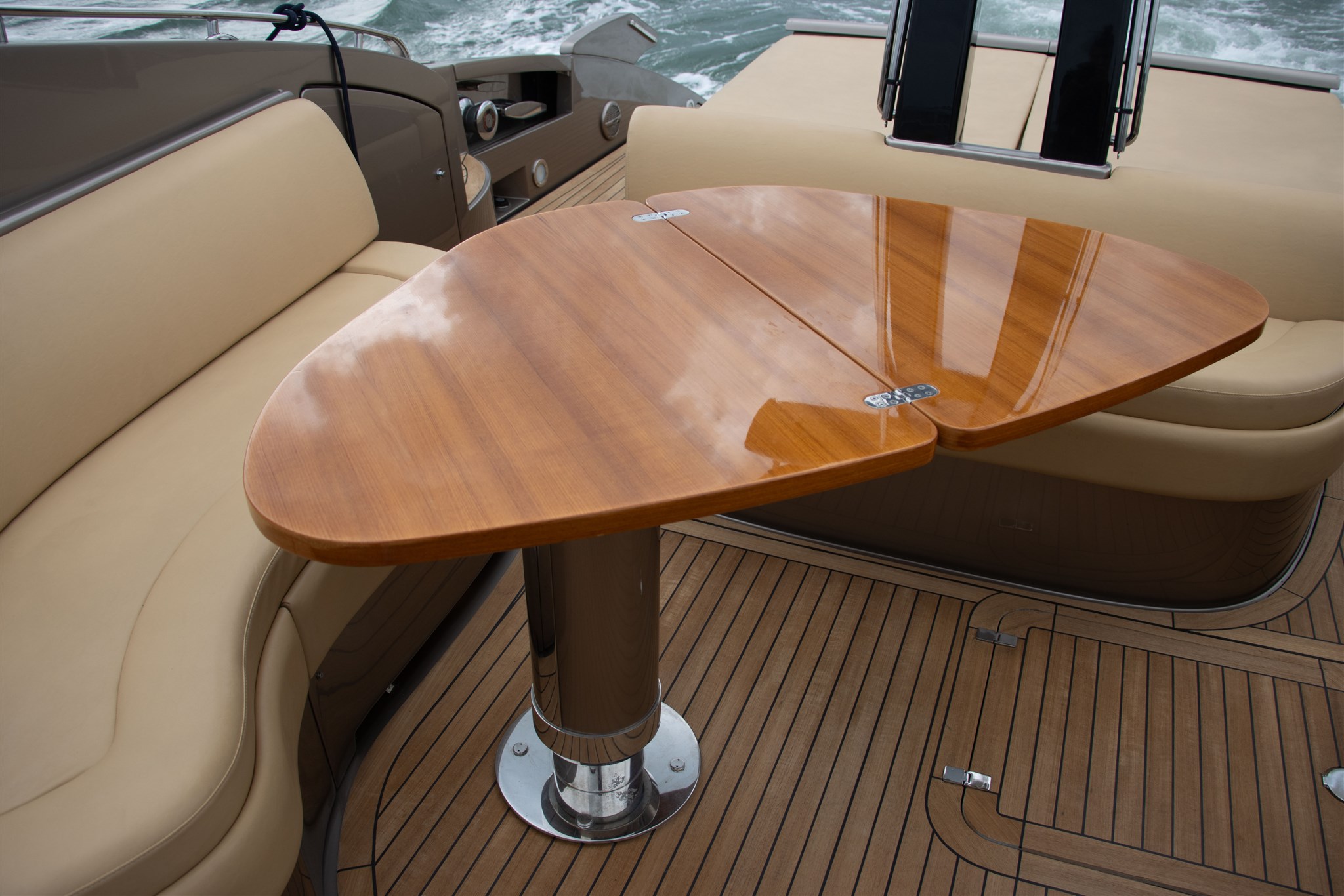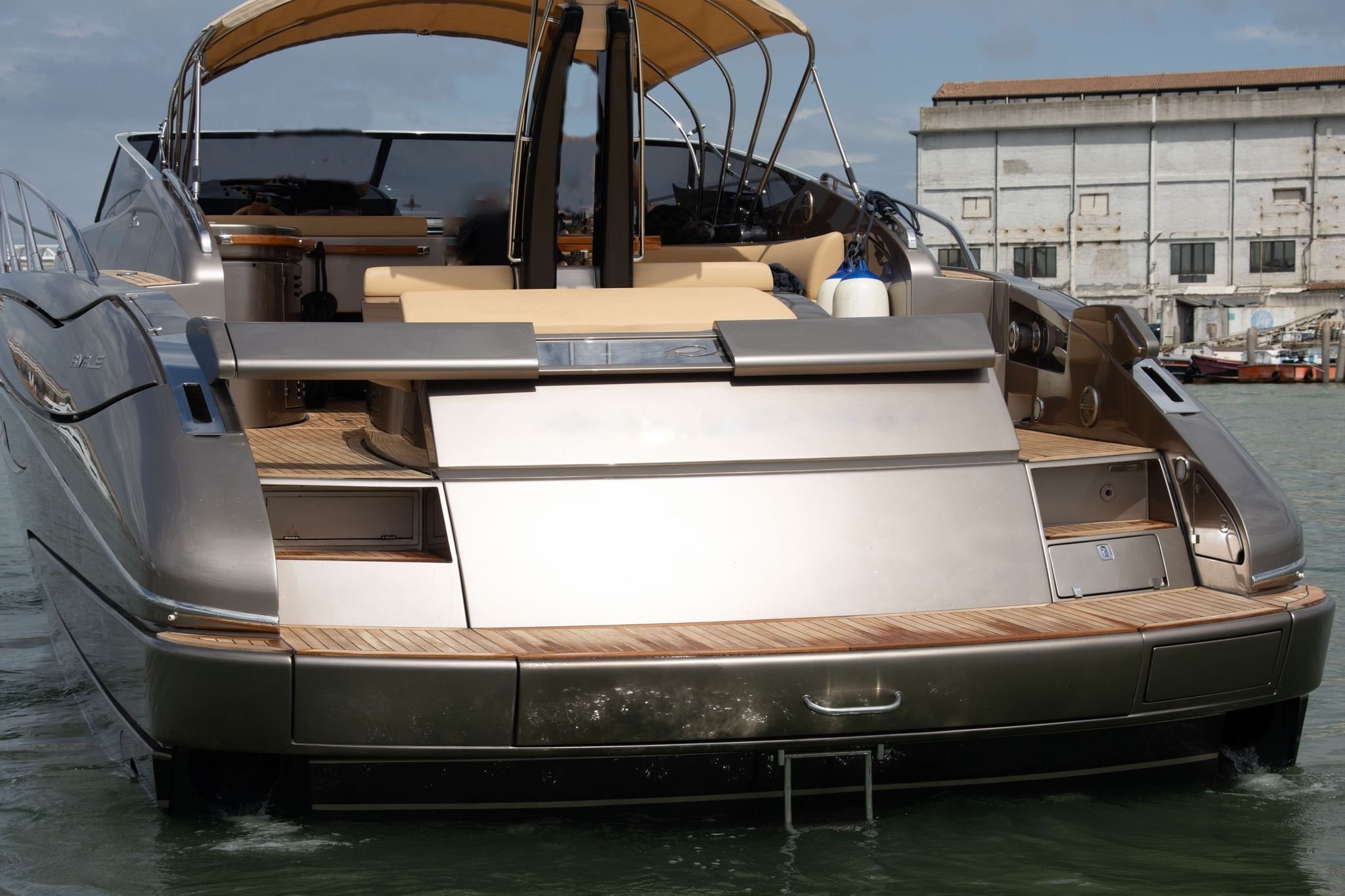 Allarme motore, Allarme sentina, Alternatore, Ancora, Autoclave, Batterie, Caricabatterie, Cavo corrente di banchina, Corrimano, Doccia esterna, Elica di poppa - stern thruster, Elica di prua - bow thruster, Fissaggio dell’ancora, Flap elettrici, Flap idraulici, Garage per tender, Indicatori Flaps, Lavandino nel Pozzetto, Luci di cortesia, Passerella, Pompa di sentina automatica, Pompa di sentina elettrica, Pompa Lavaggio Ponte, Pozzetto Teak, Presa 220V banchina, Presa acqua banchina, Salpa Ancore Elettrico, Scaletta da bagno, Tavolo pozzetto, Tientibene con cancelletti, Tromba, Winch Elettrico.