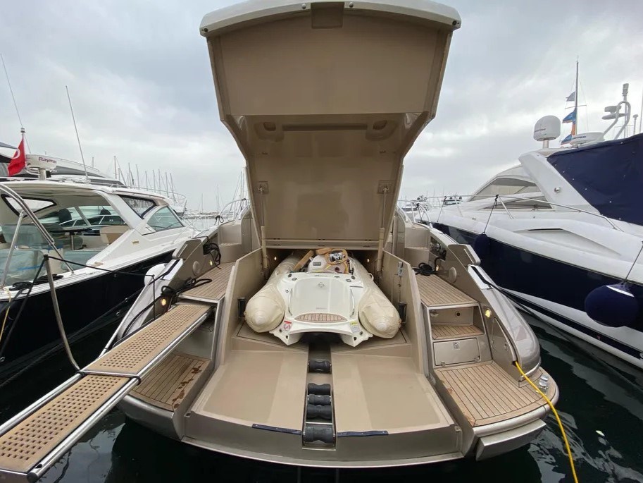 Allarme motore, Allarme sentina, Alternatore, Ancora, Autoclave, Batterie (NUOVE), Camminamenti laterali in teak, Caricabatterie, Doccia esterna, Elica di poppa - stern thruster, Elica di prua - bow thruster, Garage per tender, Lavandino nel Pozzetto, Passerella (IDRAULICA), Pompa di sentina elettrica, Pompa di sentina manuale, Ponte in teak, Pozzetto Teak, Presa 220V banchina, Presa acqua banchina, Salpa Ancore Elettrico, Scaletta da bagno, Tavolo pozzetto, Tender (IDROGETTO AVON for RIVA).
