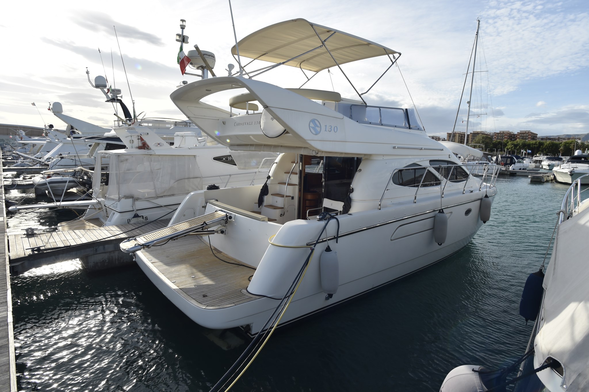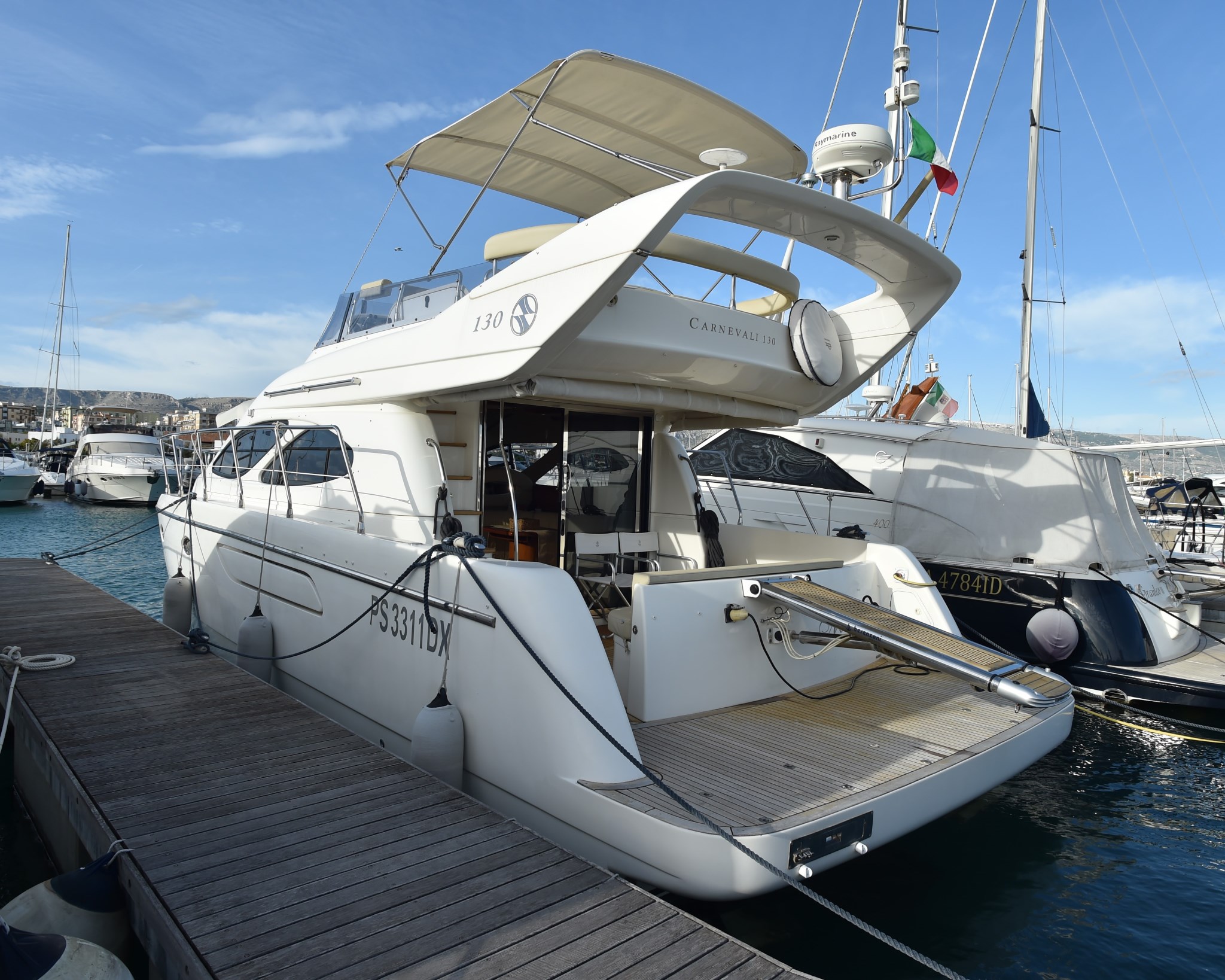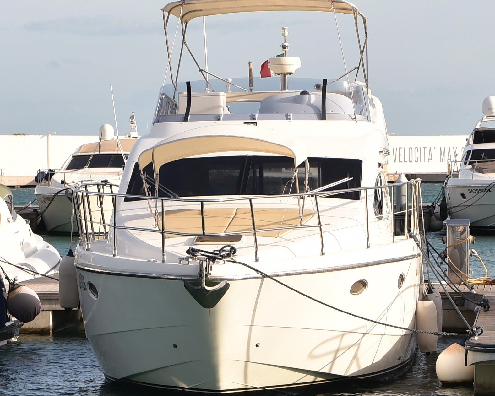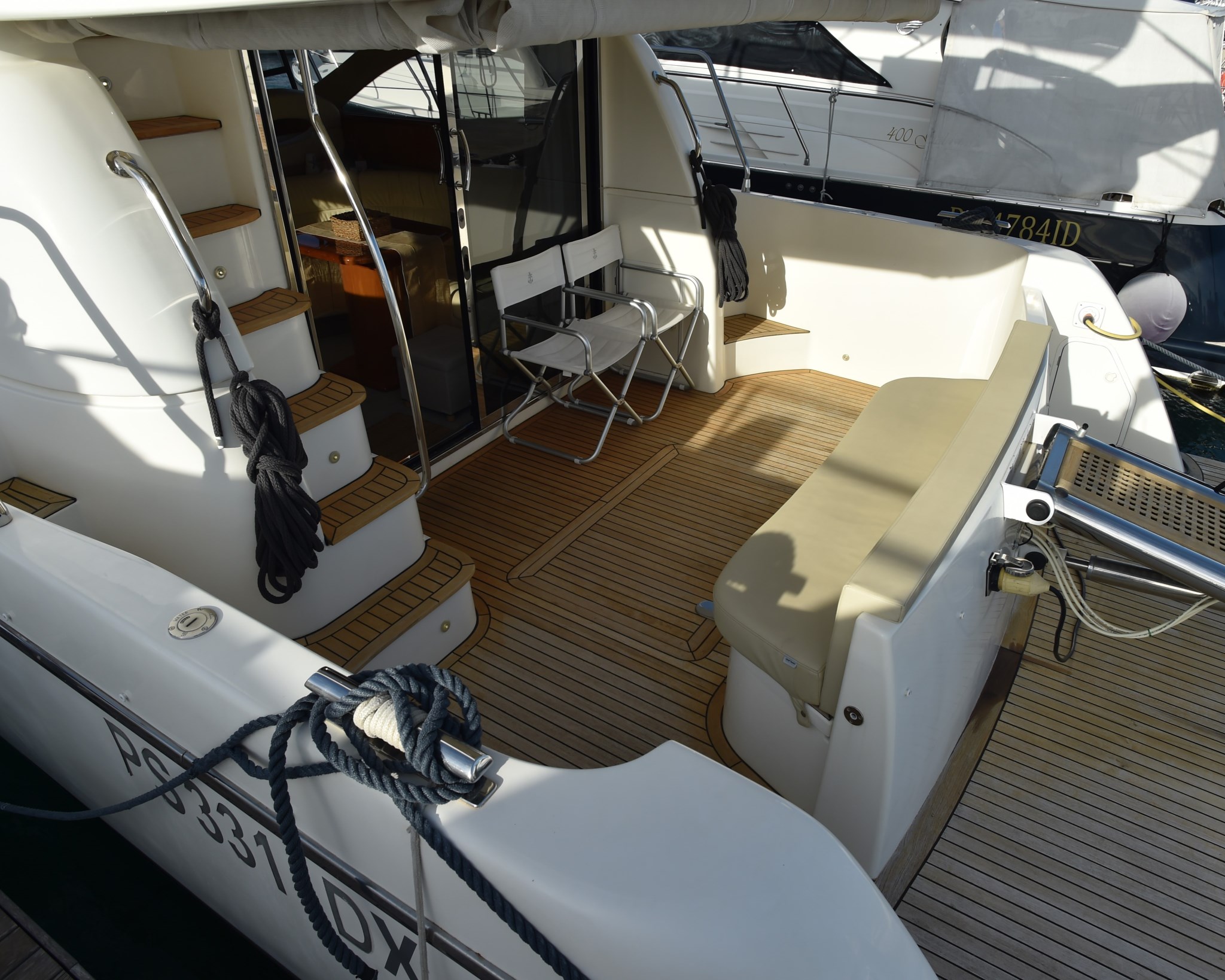 Ancora, Autoclave, 5 x Batterie, Caricabatterie, Doccia esterna, Doppia timoneria, Elica di prua - bow thruster, Faro orientabile, Passerella (INOX BESENZONI), Pompa di sentina automatica, Pompa di sentina manuale, Porta ingresso, Pozzetto Teak, Presa 220V banchina, Presa acqua banchina, Salpa Ancore Elettrico, Scaletta da bagno.