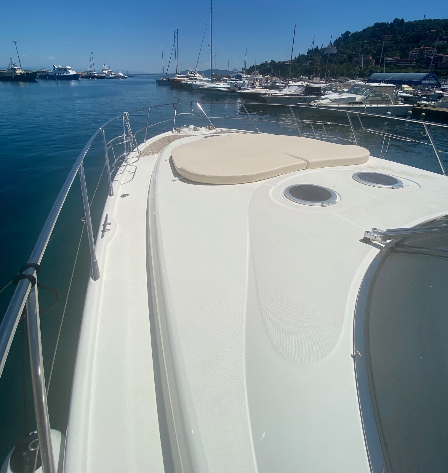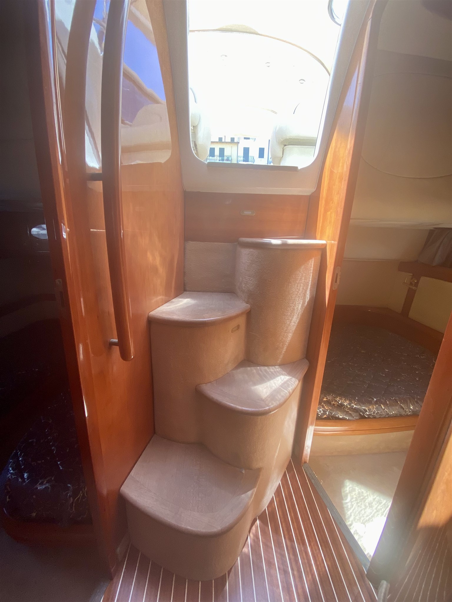 Allarme motore, Allarme sentina, Alternatore, Ancora, Autoclave, Batterie, Caricabatterie, Cavo corrente di banchina, Colorazione speciale (SCAFO BLU), Doccia esterna, Elica di prua - bow thruster, Faro orientabile, Flap idraulici, Garage per tender, Impianto antincendio, Lavandino nel Pozzetto, Luci di cortesia, Passerella, Piattaforma, Pompa di sentina automatica, Pompa di sentina elettrica, Pompa di sentina manuale, Pozzetto Teak, Presa 220V banchina, Rollbar, Salpa Ancore Elettrico, Scaletta da bagno, Tavolo pozzetto, Tientibene con cancelletti, Tromba, Winch tonneggio di poppa.