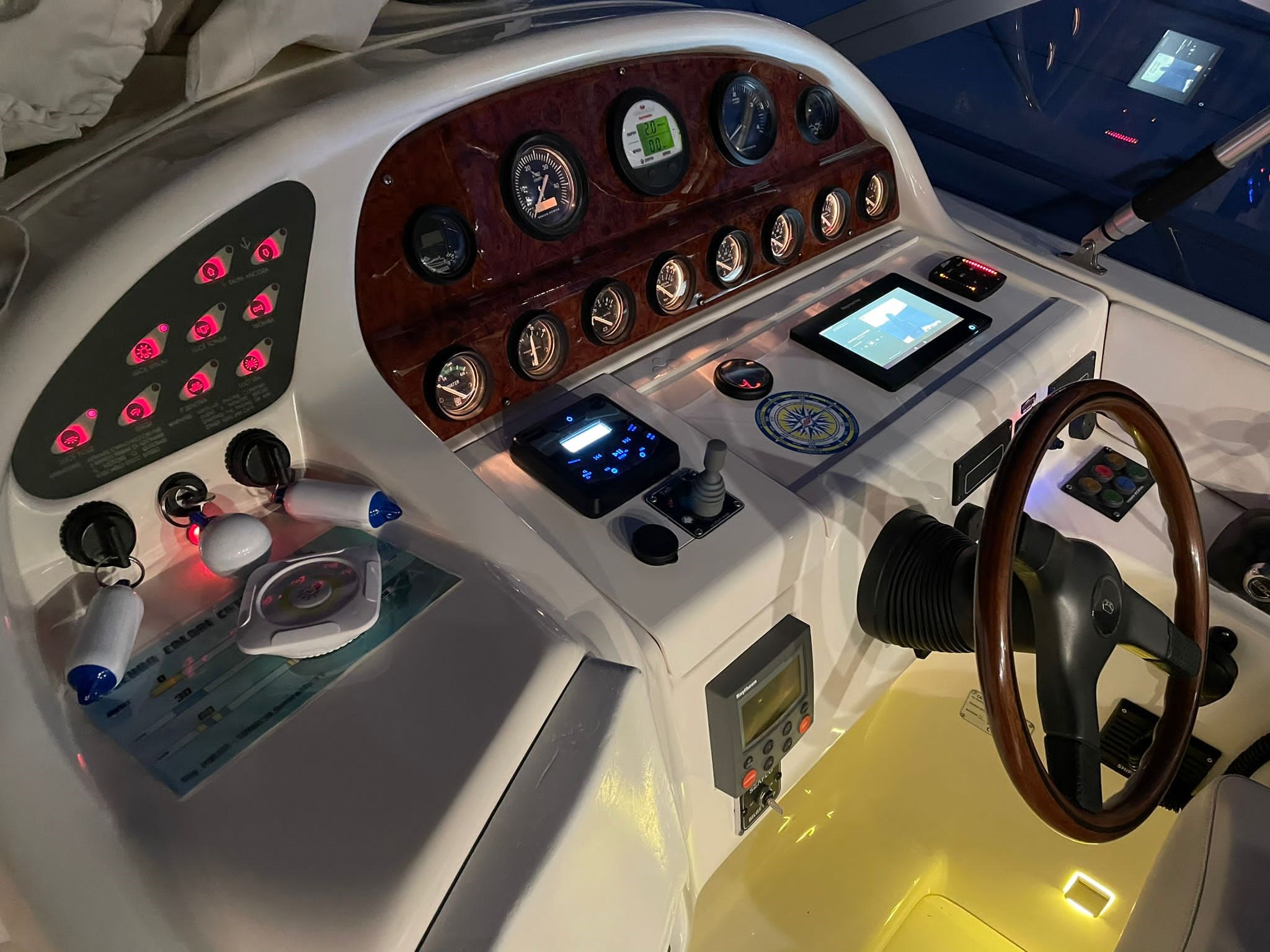 Bussola, Comando motori elettronico, Computer di bordo, Contametri catena, Contamiglia, DSC vhf, Ecoscandaglio, GPS, Plotter, Plotter con antenna GPS, Radio VHF.