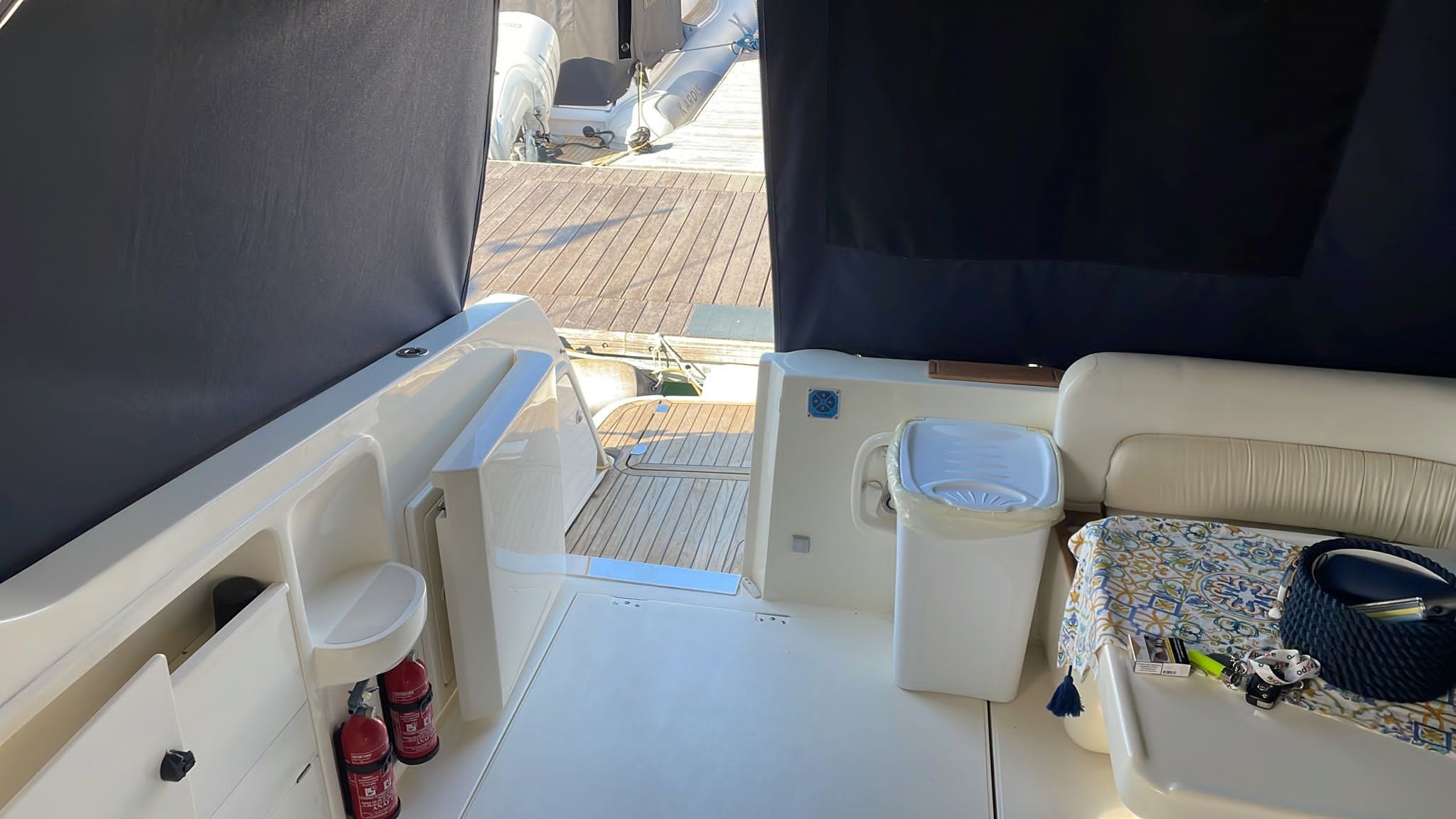 Allarme fumo/gas, Allarme motore, Allarme sentina, Ancora, Autoclave, Autogonfiabile, Batterie, Caricabatterie, Doccia esterna, Elica di prua - bow thruster, Flap elettrici, Impianto antincendio, Passerella, Piattaforma, Pompa di sentina automatica, Pompa di sentina manuale, Pozzetto Teak, Presa 220V banchina, Raddrizzatore, Rollbar, Salpa Ancore Elettrico, Scaletta da bagno, Tavolo pozzetto, Tromba, Winch tonneggio di prua.