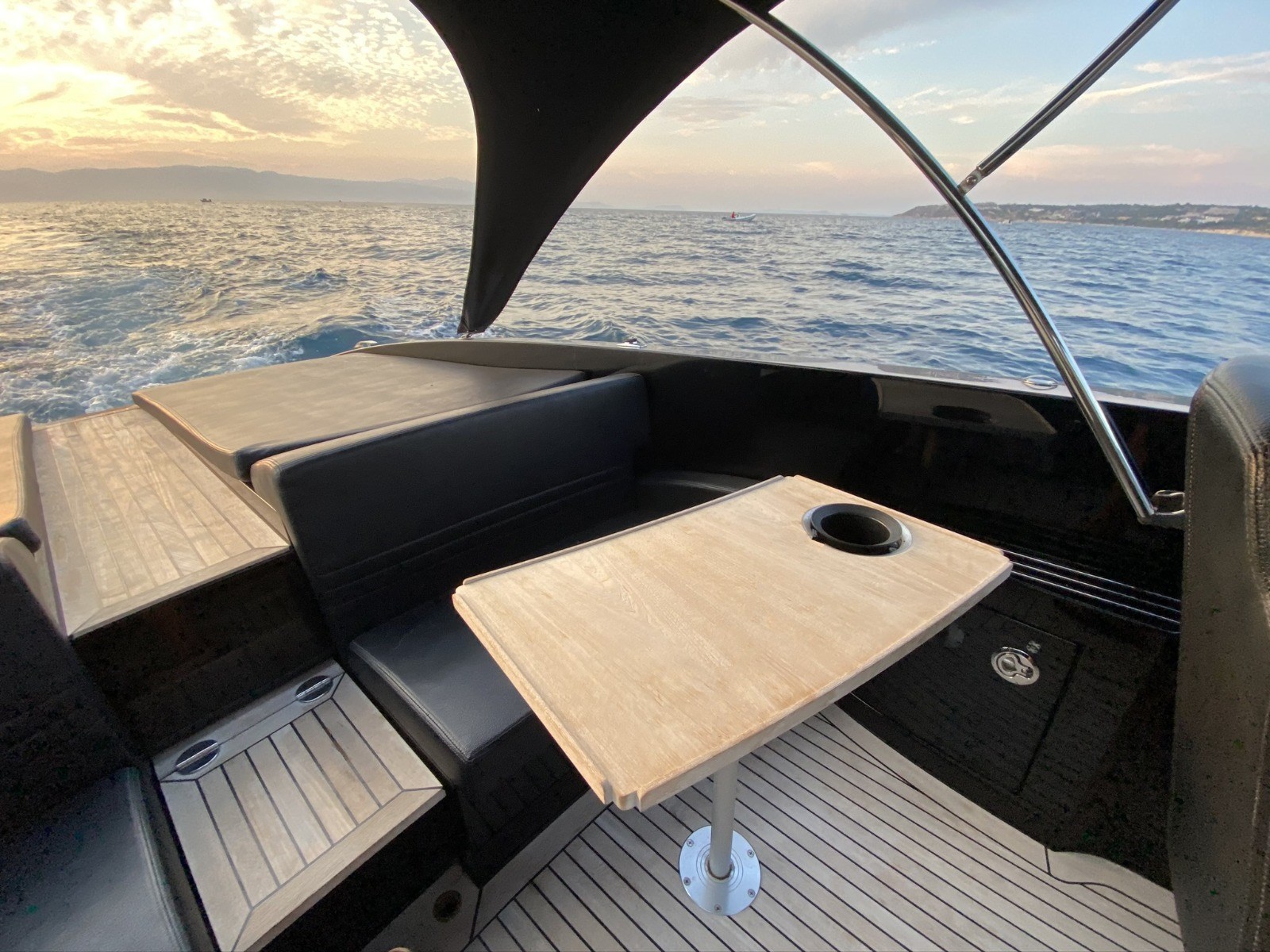 Allarme motore, Allarme sentina, Autoclave, Caricabatterie, Flap elettrici, Pozzetto Teak, Presa 220V banchina, Salpa Ancore Elettrico, Tavolo pozzetto, Tuga in teak.