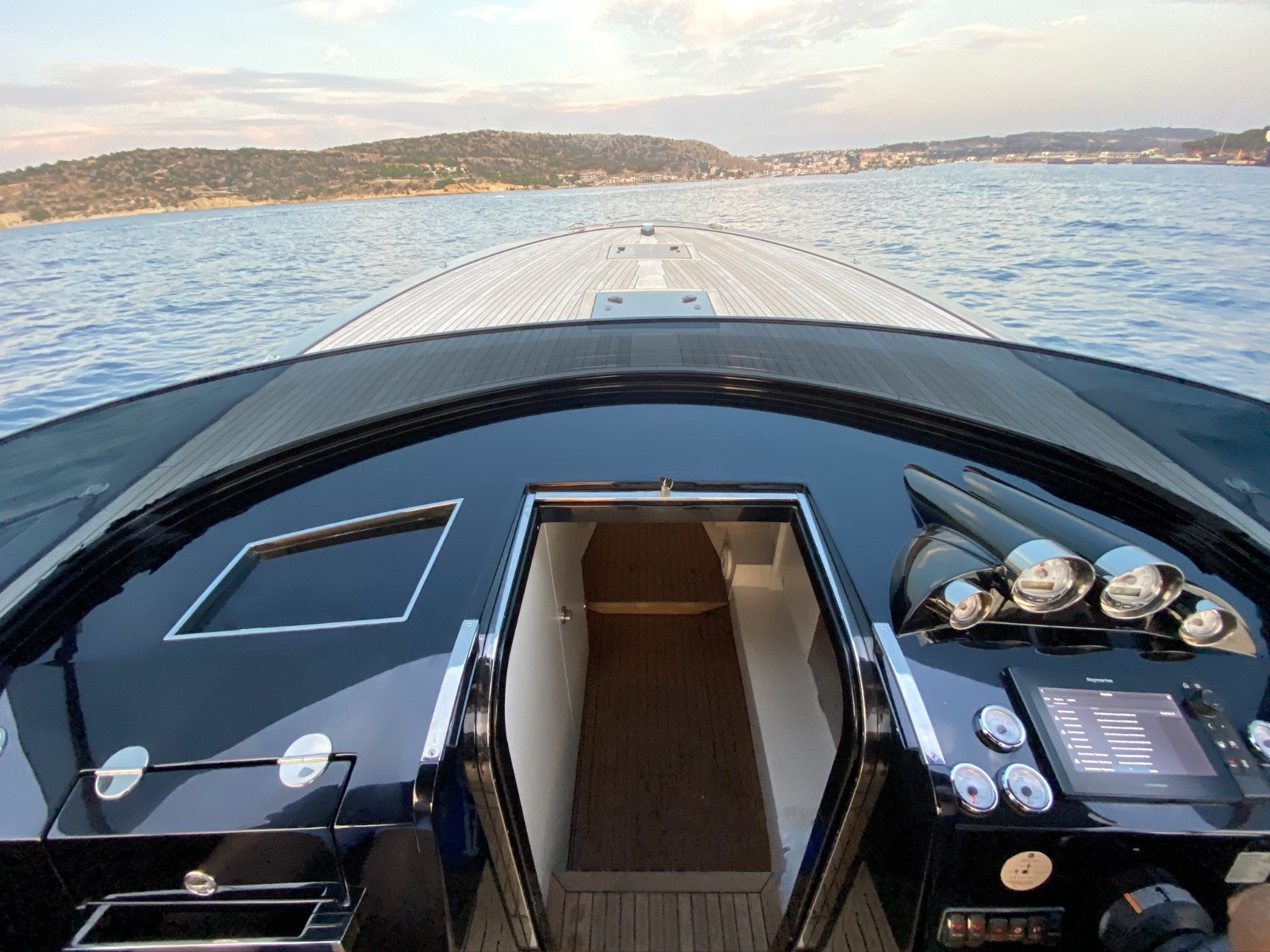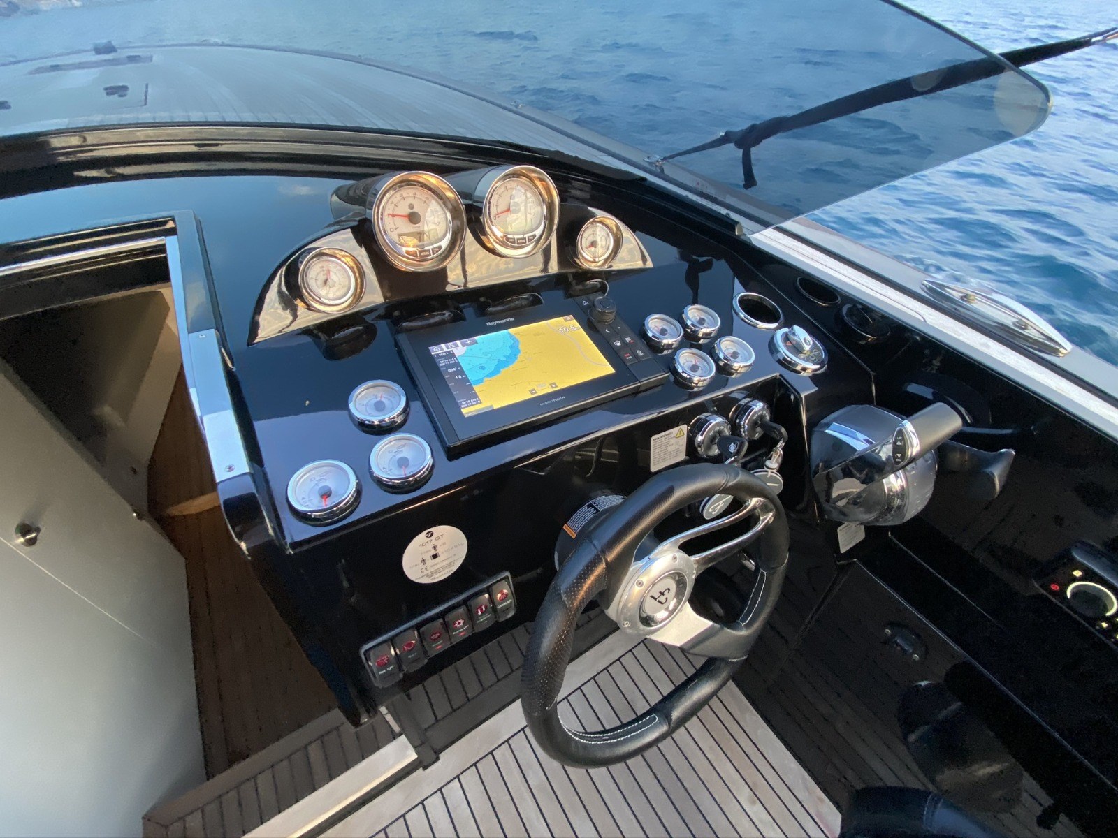Comando motori elettronico, Computer di bordo, Contamiglia, Display, DSC vhf, Ecoscandaglio, Pilota automatico, Plotter con antenna GPS.