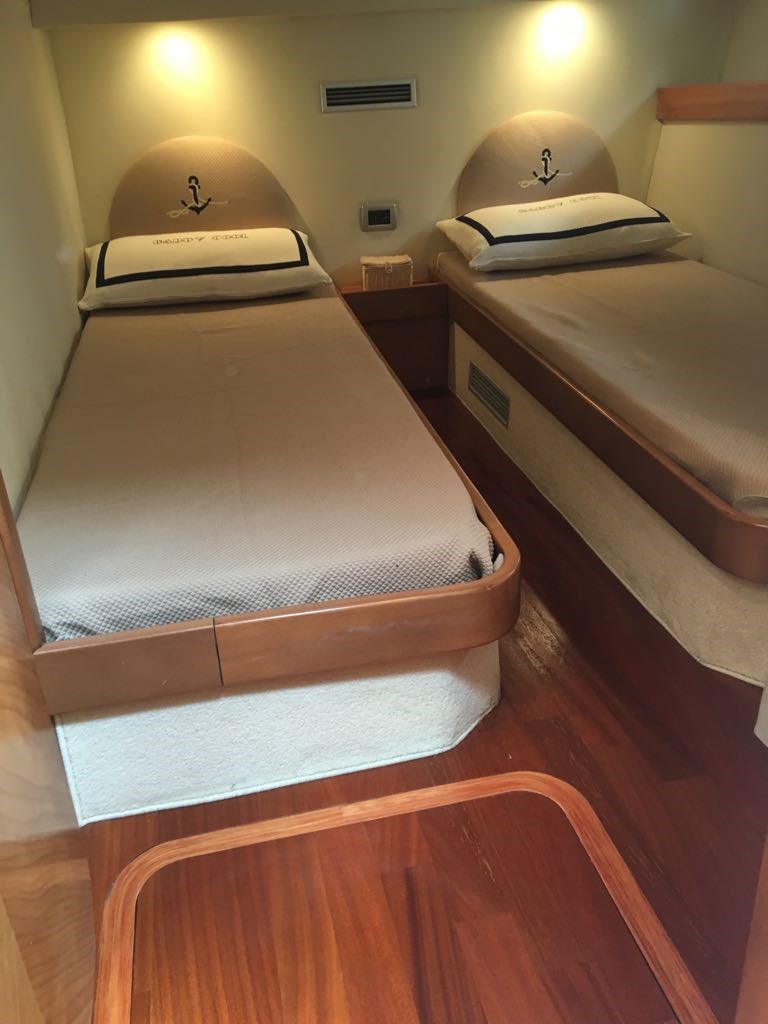 Allarme motore, Allarme sentina, Ancora, Autoclave, Batterie, Caricabatterie, Colorazione speciale (CARTA ZUCCHERO), Doccia esterna, Elica di prua - bow thruster, Flap idraulici, Hard top, Impianto antincendio, Luci di cortesia, Passerella (IDRAULICA A SCOMPARSA), Piattaforma (IDRAULICA AFFONDABILE), Pompa di sentina automatica, Pompa di sentina elettrica, Pompa di sentina manuale, Porta ingresso, Pozzetto Teak, Presa 220V banchina, Raddrizzatore, Rollbar, Salpa Ancore Elettrico, Scaletta da bagno, Selle per Tender, Tavolo pozzetto (ELETTRICO), Tender, Tientibene con cancelletti, Tromba, Winch tonneggio di poppa.