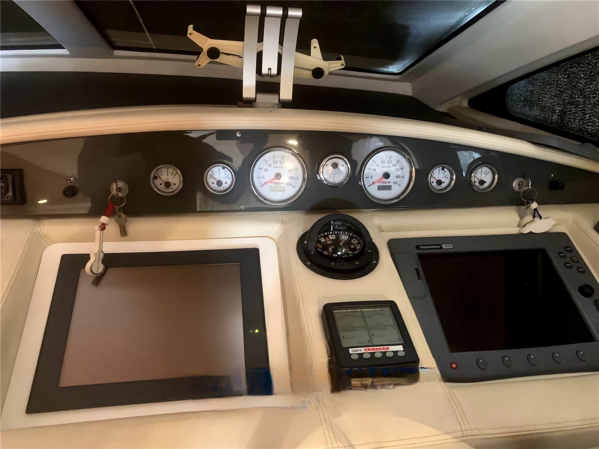 Angolo barra, Bussola, Comando motori elettronico, Contamiglia, Ecoscandaglio, GPS (Raymarine), Pilota automatico (Raymarine), Plotter, Plotter con antenna GPS, Radar, Radio VHF.