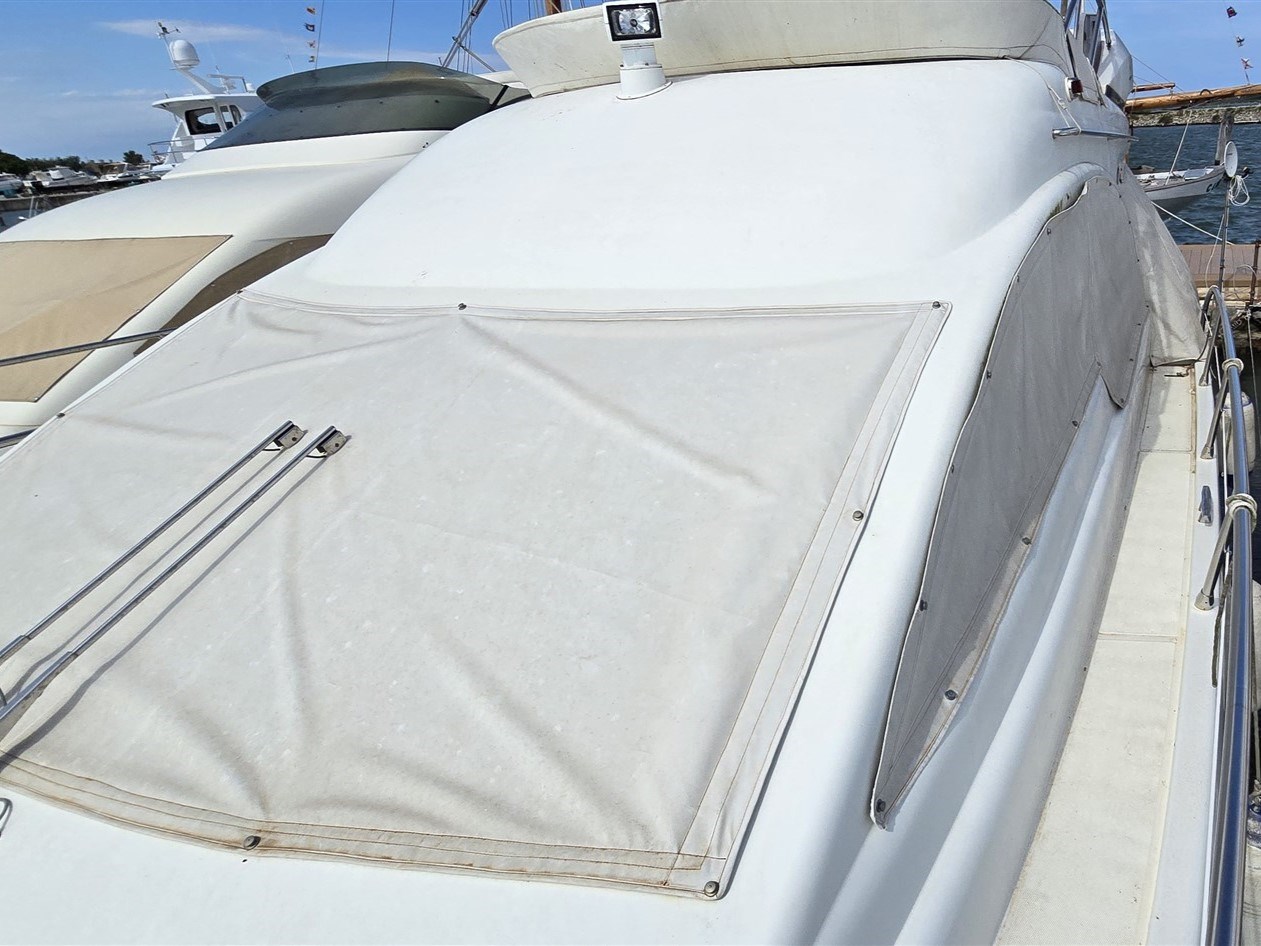 Bimini, Cuscineria di poppa, Cuscineria di prua, Cuscineria fly (mai usata e conservata), Cuscineria Pozzetto, Oscuranti, Teli copri finestra, Telo Copertura Fly, Telo copriconsolle, Tendalino.