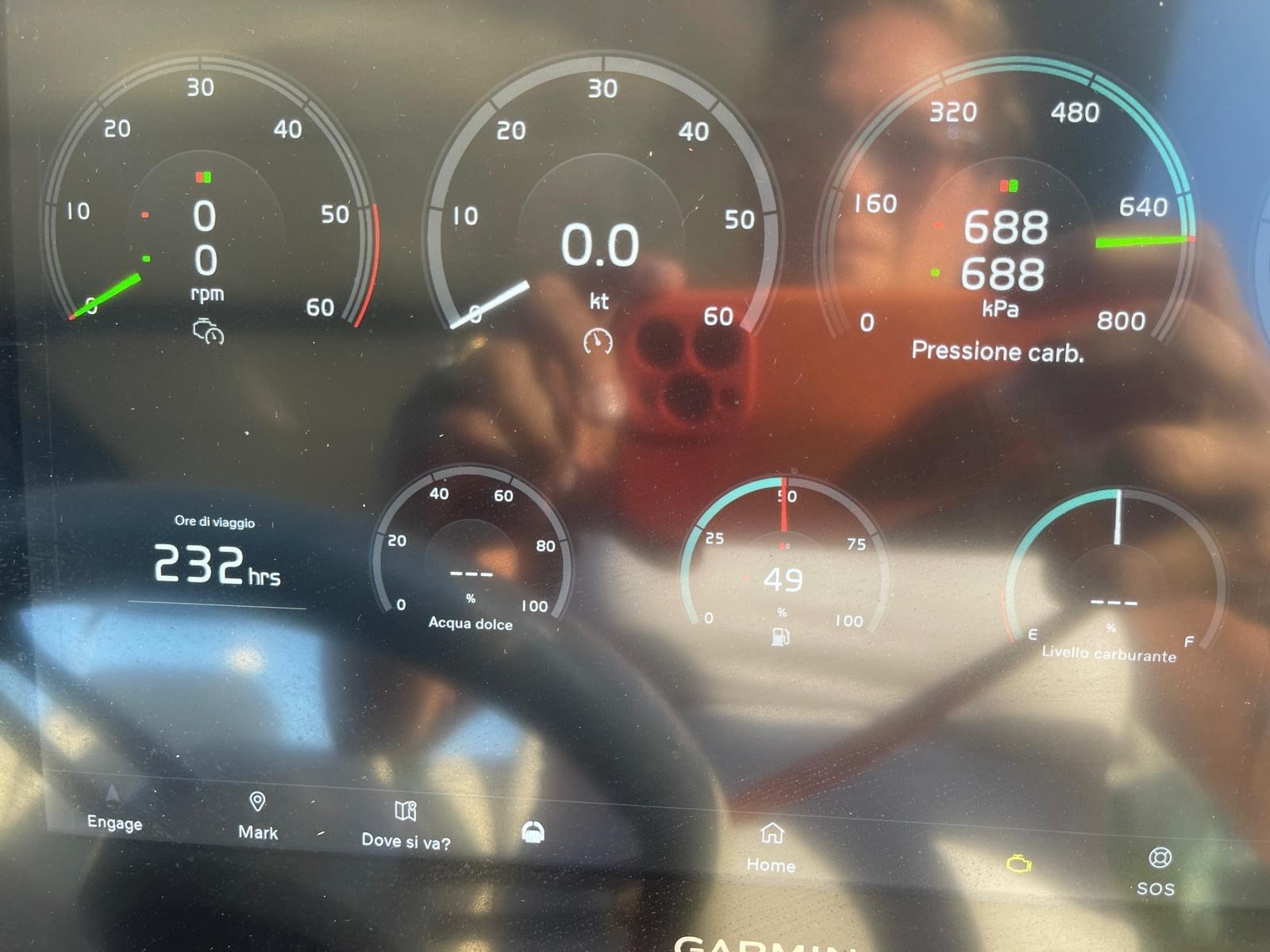 Angolo barra, Bussola, Comando motori elettronico, Contametri catena, Contamiglia, Display, Ecoscandaglio, GPS, Luci di navigazione, Pilota automatico, Plotter con antenna GPS, Radio VHF, Sedile Copilota.