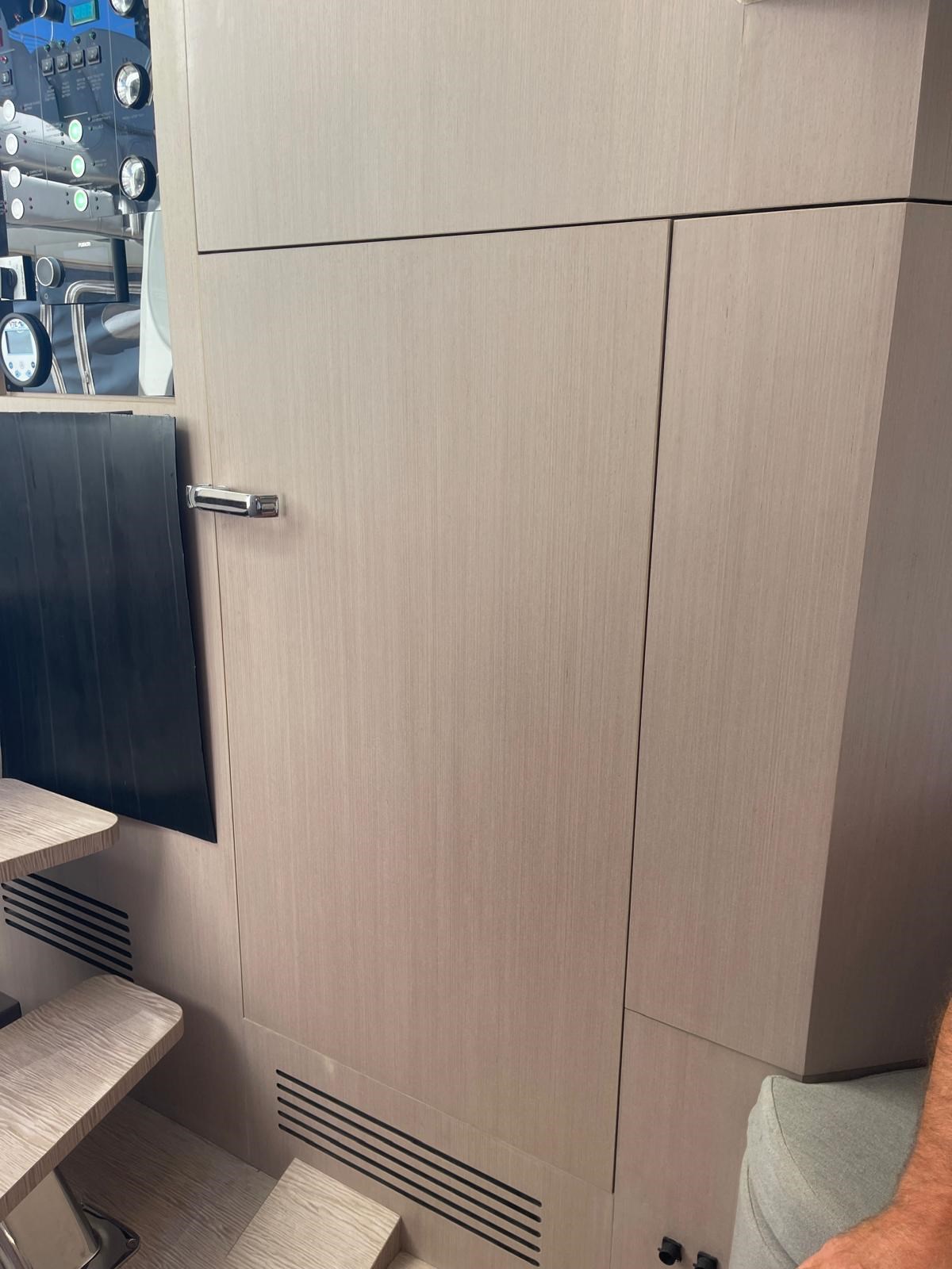 Allarme motore, Allarme sentina, Alternatore, Ancora, Autoclave, Batterie, Caricabatterie, Cavo corrente di banchina, Colorazione speciale (SPECTRUM BLUE), Doccia esterna, Flap elettrici, Impianto antincendio, Lavandino nel Pozzetto, Luci di cortesia, Luci subacquee, Passerella, Piattaforma, Pompa di sentina automatica, Pompa di sentina elettrica, Pompa di sentina manuale, Porta ingresso, Pozzetto Teak, Presa 220V banchina, Salpa Ancore Elettrico, Scaletta da bagno, Tavolo pozzetto, Tromba, T-Top (CARBONIO).