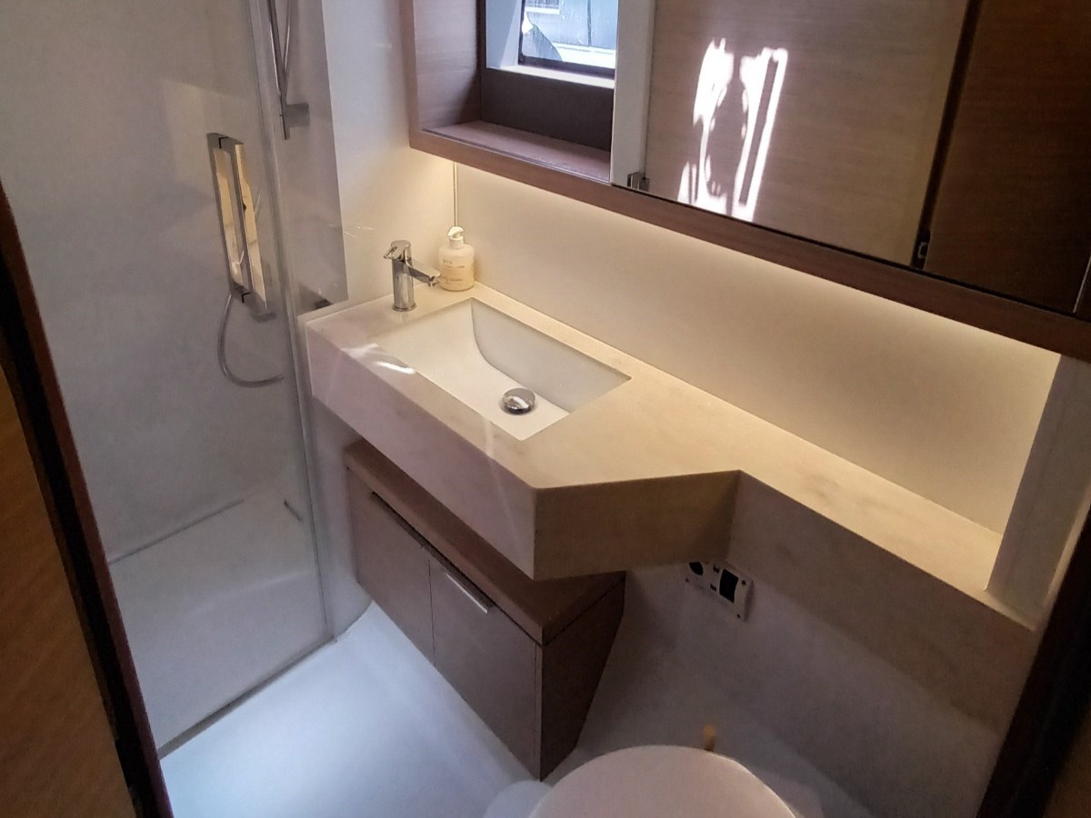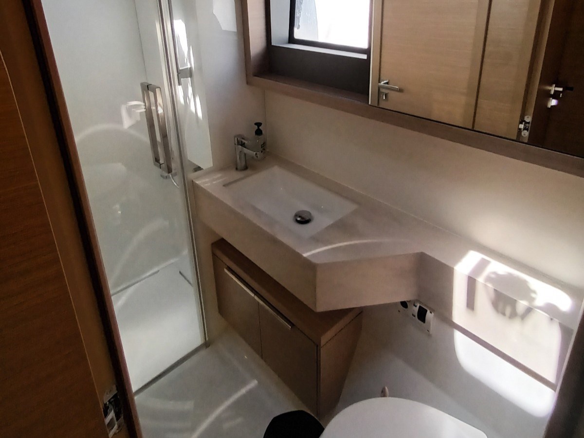 Acqua Calda, Aria condizionata (65.000 BTU), Boiler, Dissalatore (200 l/h), Indicatore del serbatoio del carburante, Indicatore del Serbatoio dell’Acqua, Inverter (2000W), Prese interne 12v, Prese interne 220v, Riscaldamento (WEBASTO), WC marino elettrico.