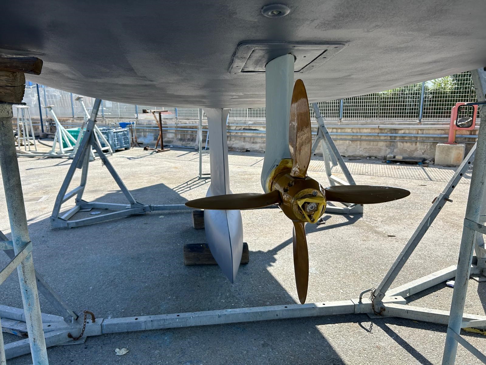 -motore sbarcato, messa su banco e portato a 0 ore con sostituzione di componenti soggetti a consumo come nuova turbina, raiser, alternatore, pompa dell’acqua, centralina, cuffia saildrive, etc(2021-22);