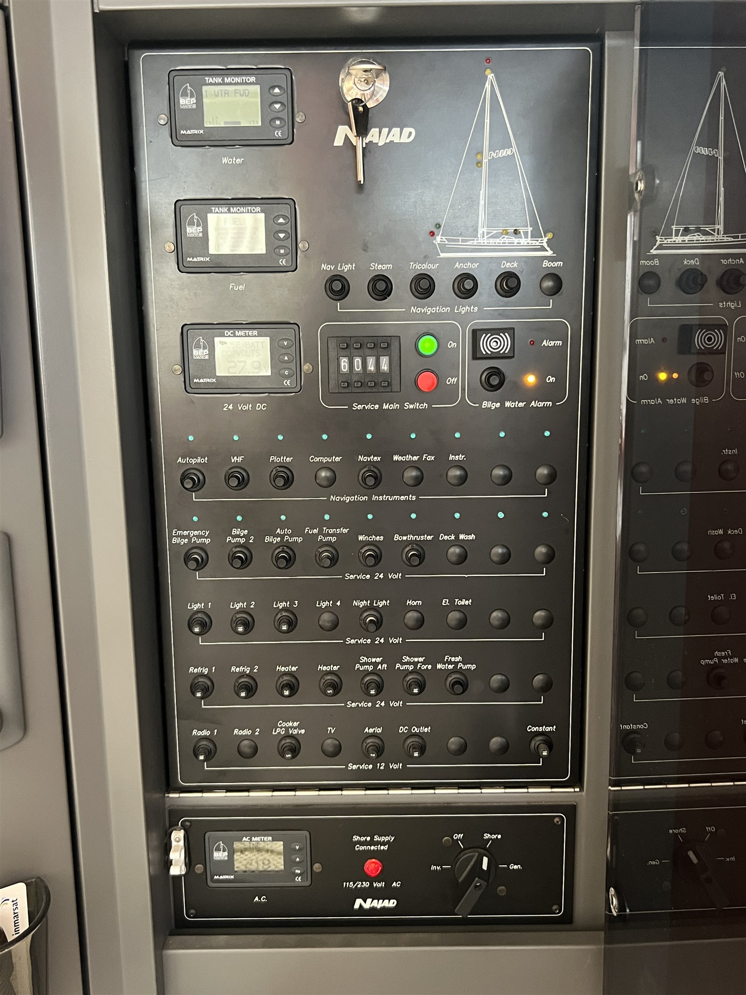Batterie (AGM 2025), 2 x Pannelli Solari (2X100W SOLBIAN - VICRON SMART CHARGER 2024), Pompa di sentina automatica, Pompa di sentina elettrica, Pompa di sentina manuale, Ponte in teak, Pozzetto Teak, Presa 220V banchina, Salpa Ancore Elettrico, Sartiame spiroidale, Scaletta da bagno, Supporto motore fuoribordo, Tavolo pozzetto, 4 x Winch Elettrico (ANDERSEN 2X58 + 2X46 INOX), Windex.