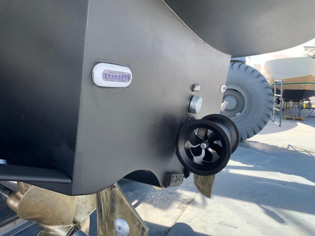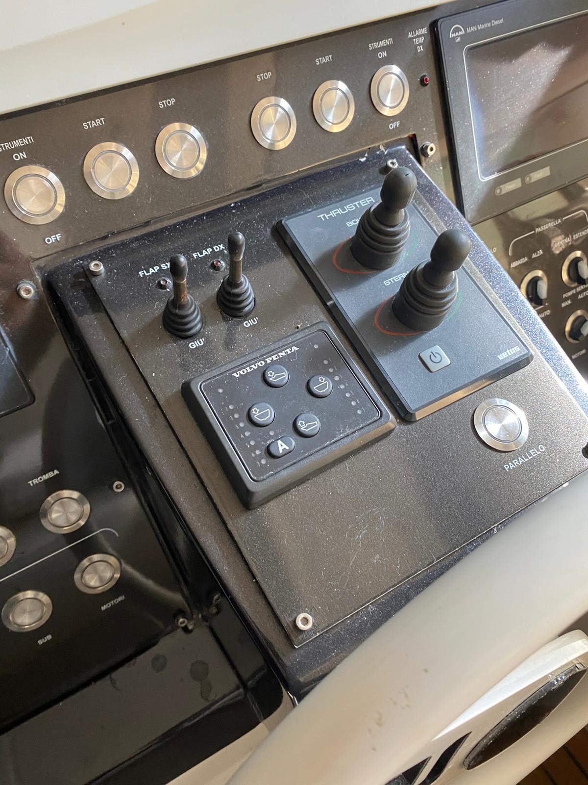 Allarme motore, Allarme sentina, Ancora, Autoclave, Batterie, Doccia esterna, Elica di poppa - stern thruster, Elica di prua - bow thruster, Faro orientabile, Flap idraulici, Hard top, Impianto antincendio, Indicatori Flaps, Lavandino nel Pozzetto, Luci di cortesia, Luci subacquee, Pompa di sentina automatica, Pompa di sentina elettrica, Pompa di sentina manuale, Pozzetto Teak, Presa 220V banchina, Raddrizzatore, Salpa Ancore Elettrico, Scaletta da bagno, Tavolo pozzetto, Tromba, 2 x Winch tonneggio di poppa, Winch tonneggio di prua.