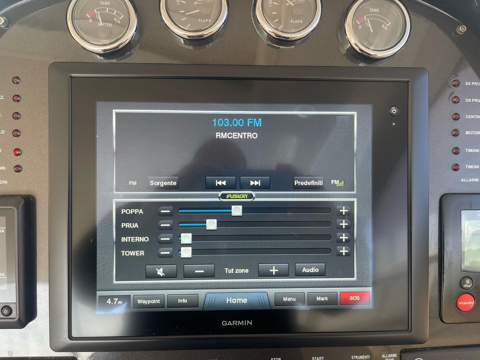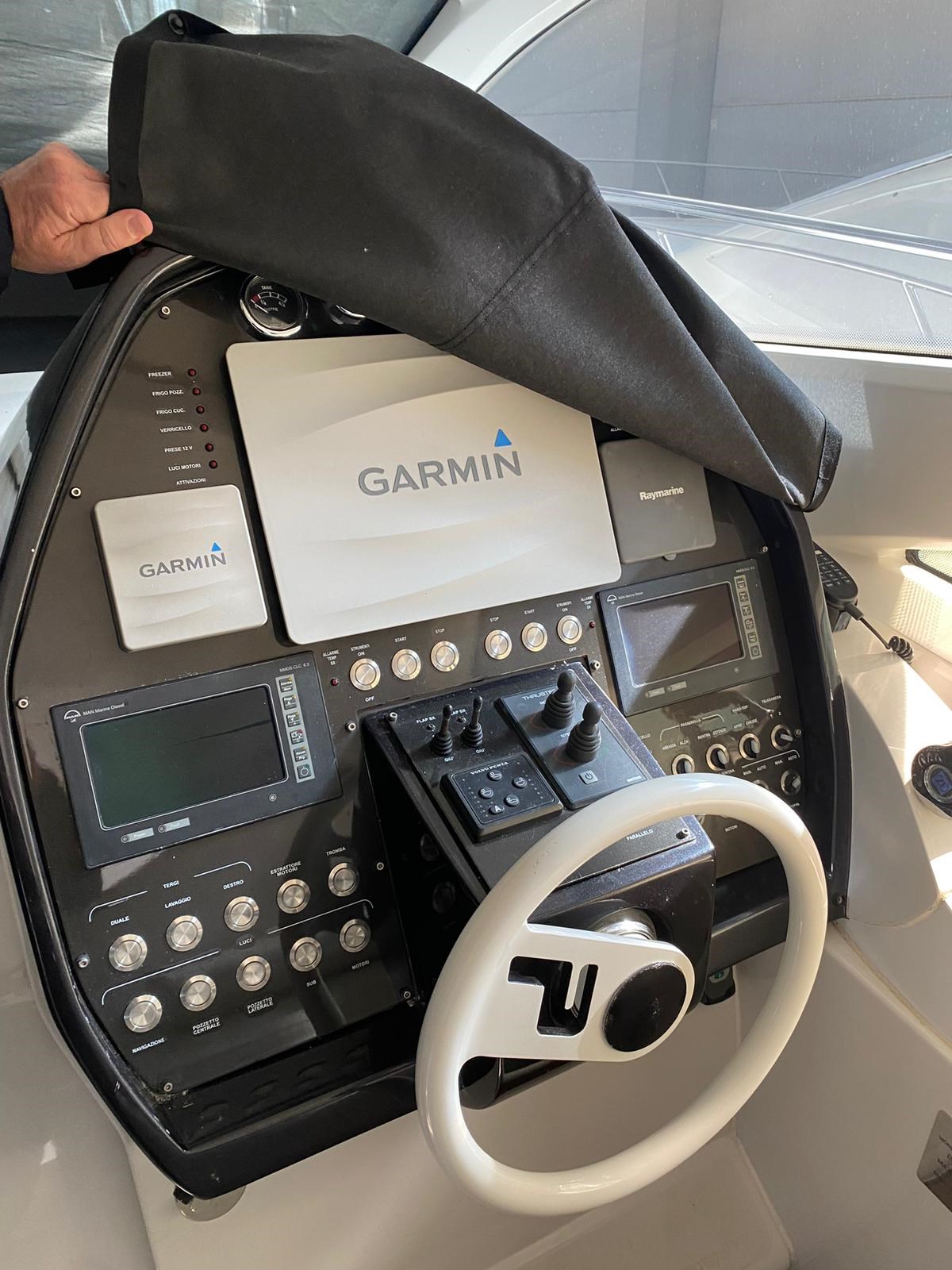 Angolo barra, Antenna radar, Bussola, Comando motori elettronico (ZF), Contametri catena (QUICK), Display (MOTORE DIGITALE MAN), DSC vhf, Ecoscandaglio (RAYMARINE ST40), GPS (GARMIN 8012 G2 VISION 716 TOUCH), Pilota automatico (ST 6001), Radar, Radio VHF, Stazione vento.