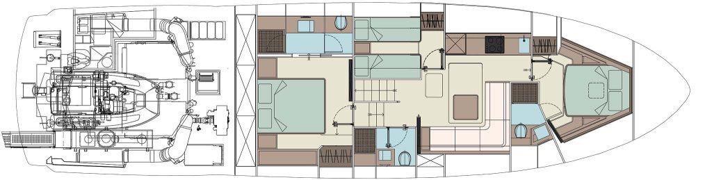 Camminamenti laterali in teak (con comento grigio), Caricabatterie, Elica di poppa - stern thruster, Luci di cortesia, 6 x Luci subacquee (2 a poppa e 4 laterali), Pozzetto Teak (con comento grigio), Scaletta da bagno (idraulica), Stabilizzatori (Seakeeper NG9).