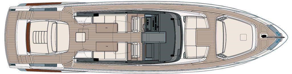 Tra le dotazioni: luci subacquee, grill in pozzetto, bimini manuale e automatico, lettini prendisole e scala bagno idraulica.