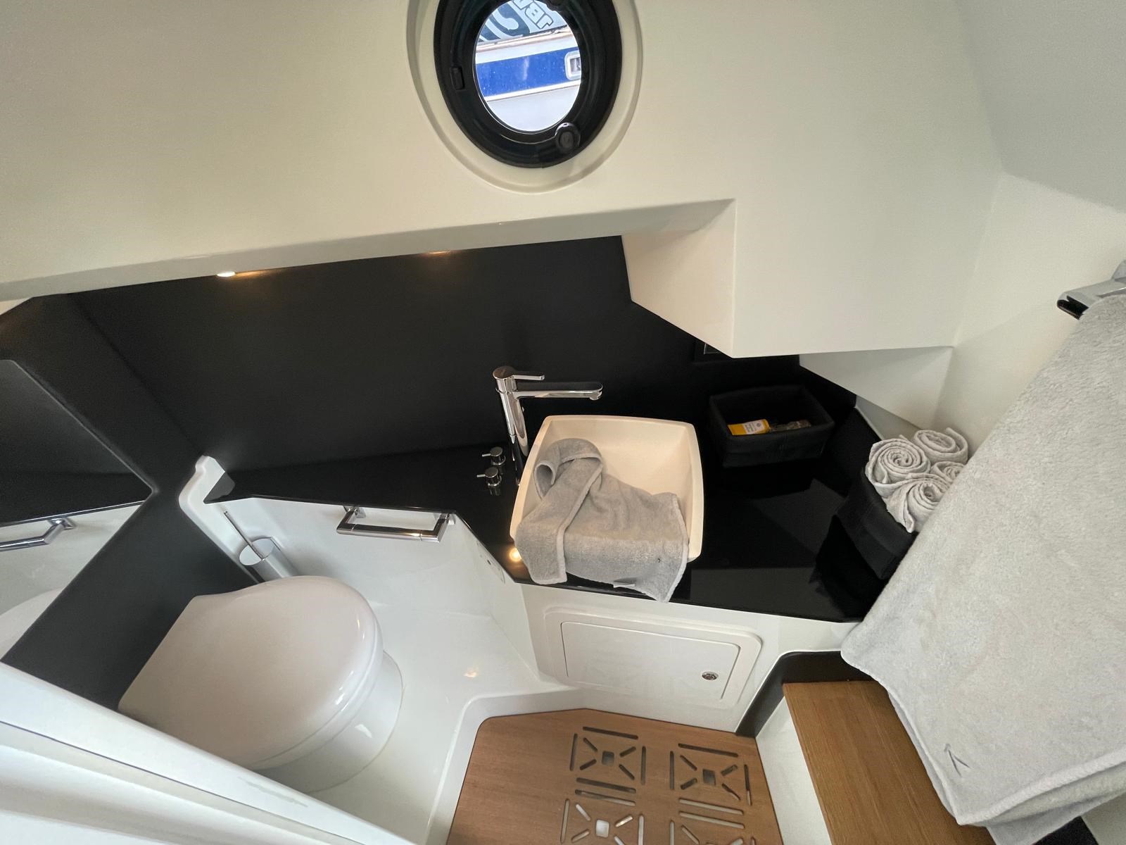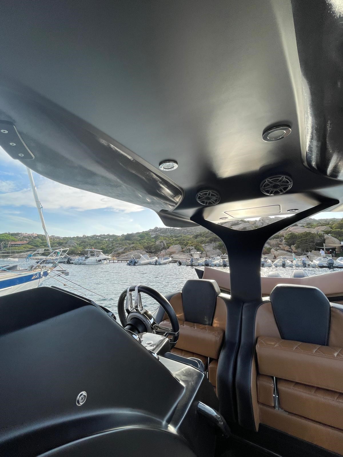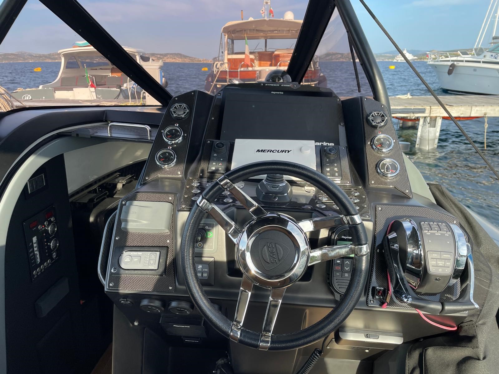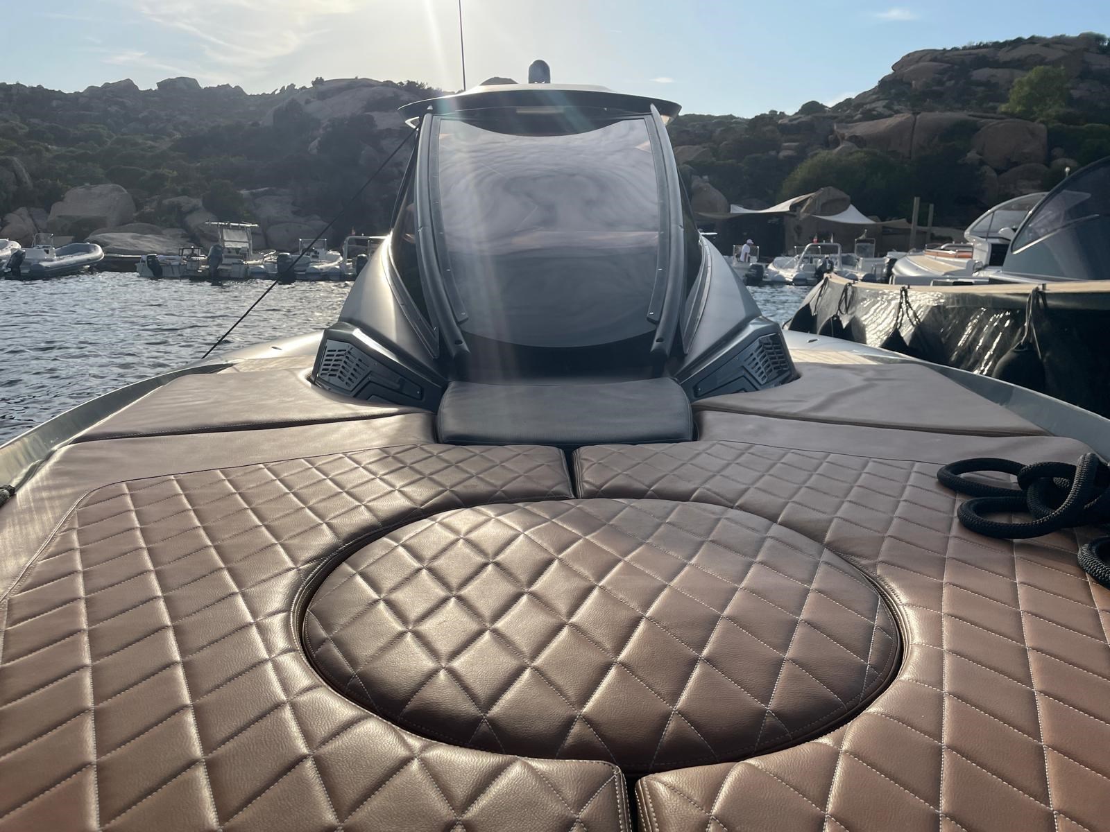 Allarme motore, Allarme sentina, Alternatore, Ancora, Auto Dynamic Trim Interceptor, Autoclave, Batterie, Bitte Abbattibili, Caricabatterie, Doccia esterna, Elica di prua - bow thruster, Lavandino nel Pozzetto, Luci di cortesia, Luci subacquee, Pompa di sentina automatica, Pompa di sentina elettrica, Pompa di sentina manuale, Pozzetto Teak, Presa 220V banchina, Salpa Ancore Elettrico, Scaletta da bagno, Tavolo, Tromba, T-Top.