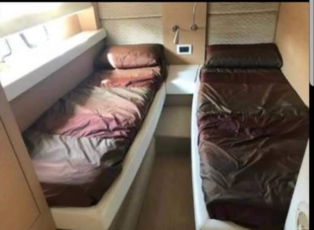 Allarme motore, Allarme sentina, Ancora (in acciaio INOX a specchio da 30 kg), Autoclave, Batterie, Caricabatterie, Colorazione speciale (SCAFO PEARL BEIGE METALLIZZATO), Doccia esterna, Elica di prua - bow thruster, Faro orientabile, Flap idraulici, Garage per tender, Hard top, Impianto antincendio, Lavandino nel Pozzetto, Luci di cortesia, Luci subacquee, Passerella (IDRAULICA), Piattaforma, Pompa di sentina automatica, Pompa di sentina elettrica, Pompa di sentina manuale, Pozzetto Teak, Presa 220V banchina, Raddrizzatore, Salpa Ancore Elettrico, Scaletta da bagno, Tavolo pozzetto, Tientibene con cancelletti, Tromba, Winch tonneggio di poppa.