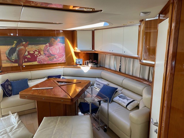 Allarme sentina, Ancora, Autoclave, Autogonfiabile, Batterie, Camminamenti laterali in teak, Caricabatterie, Colorazione speciale, Doccia esterna, Elica di prua - bow thruster, Faro orientabile, Flap idraulici, Hard top, Impianto antincendio, Luci subacquee, Piattaforma, Pompa di sentina automatica, Pompa di sentina manuale, Pozzetto Teak, Presa 220V banchina, Salpa Ancore Elettrico, Scaletta da bagno, Tavolo pozzetto, Winch Elettrico, Winch tonneggio di poppa.