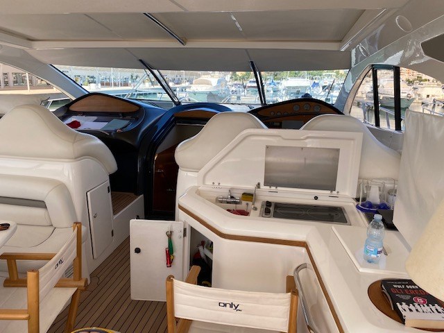 Angolo barra, Antenna radar, Bussola, Comando motori elettronico, DSC vhf, Ecoscandaglio, GPS, Pilota automatico, Radar.