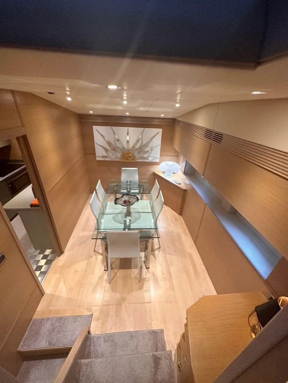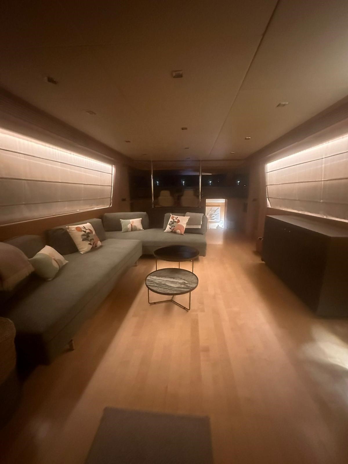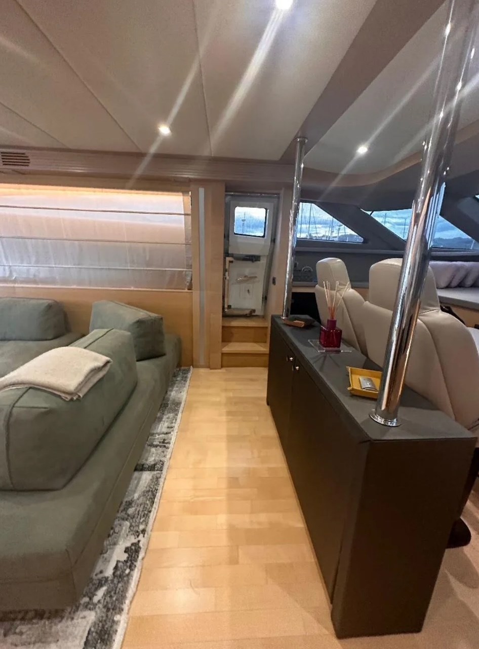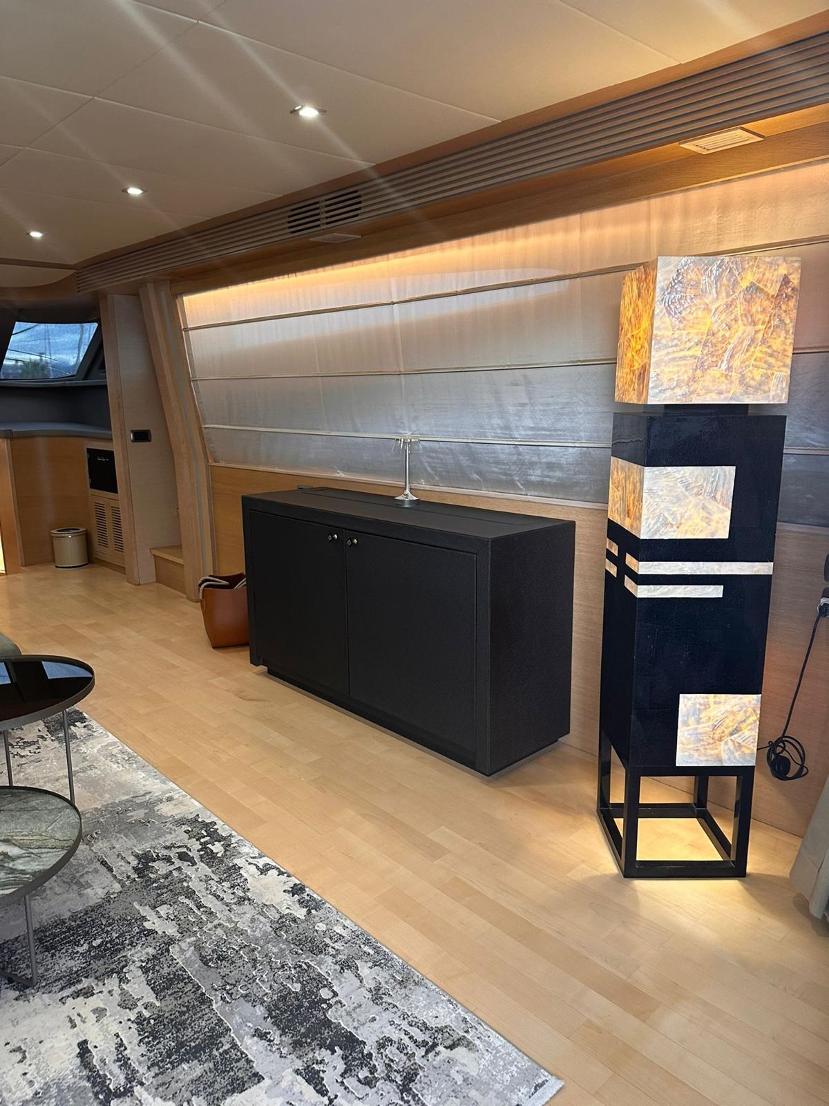 Allarme fumo/gas, Allarme motore, Allarme sentina, Alternatore, Ancora, Autoclave, Batterie, Camminamenti laterali in teak, Caricabatterie, Cavo corrente di banchina, Colorazione speciale (ARGENTO METALLIZZATO), Corrimano, Doccia esterna, Elica di prua - bow thruster, Flap idraulici, Garage per tender, Gruette per tender, Hard top, Impianto antincendio, Indicatori Flaps, Luci di cortesia, Luci subacquee, Passerella, Piattaforma, Pompa di sentina automatica, Pompa di sentina elettrica, Pompa di sentina manuale, Ponte in teak, Porta ingresso, Porta laterale, Pozzetto Teak, Presa 220V banchina, Salpa Ancore Elettrico, Scaletta da bagno, Tavolo pozzetto, Tientibene con cancelletti, Tromba, Winch tonneggio di poppa.